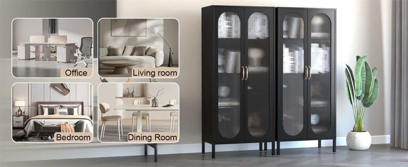 Elevate your home or office with this elegant Tall Metal Display Cabinet, featuring sleek glass doors and sturdy shelves perfect for showcasing your collectibles, books, or treasured items. The cabinet’s tall design offers ample space while the glass doors provide a clear view of your displayed items, making it an ideal curio cabinet or liquor cabinet. With a sophisticated metal frame, this glass display cabinet seamlessly complements any decor style. Whether used as a china cabinet, bookshelf with glass doors, or pantry cabinet, it offers versatile storage solutions with doors and shelves. Ideal for displaying figures, Lego collections, or as a plant cabinet, this display case is the perfect